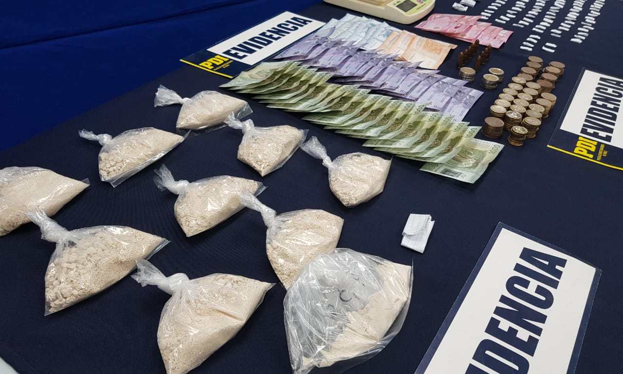 Además, se encontraron elementos utilizados para la dosificación de sustancias ilícitas, más de $1 millón en dinero en efectivo, un arma a fogueo apta para el disparo y munición de distintos calibres. Estos antecedentes, según la PDI, formarán parte del informe entregado al Ministerio Público para avanzar en la formalización correspondiente.